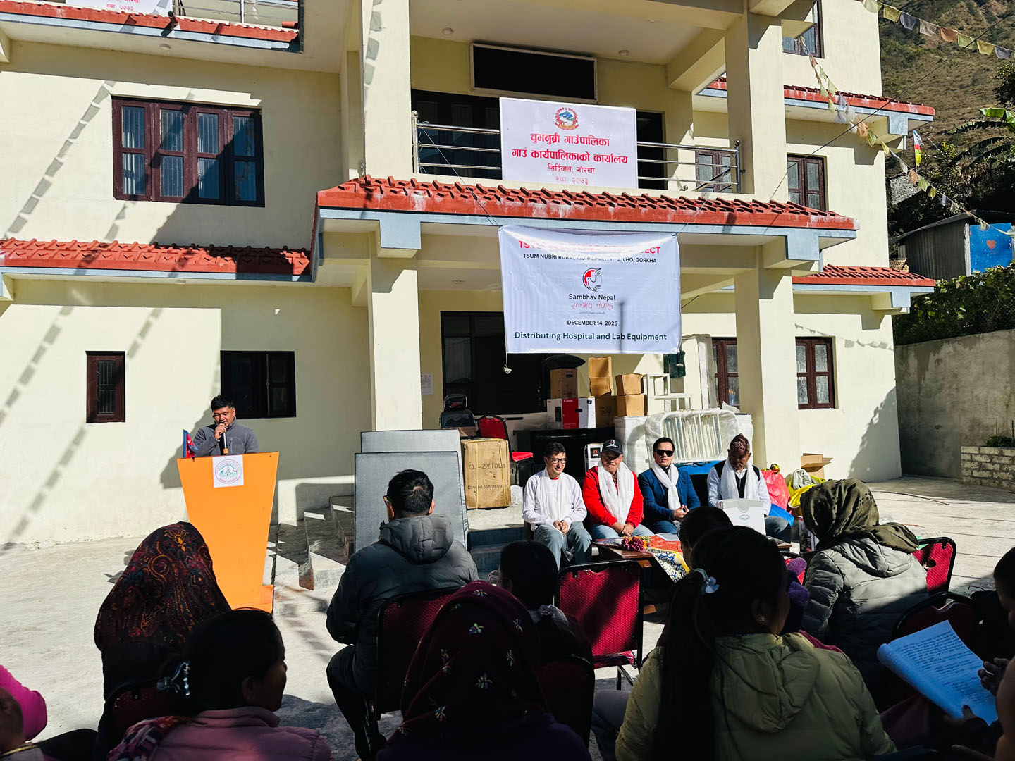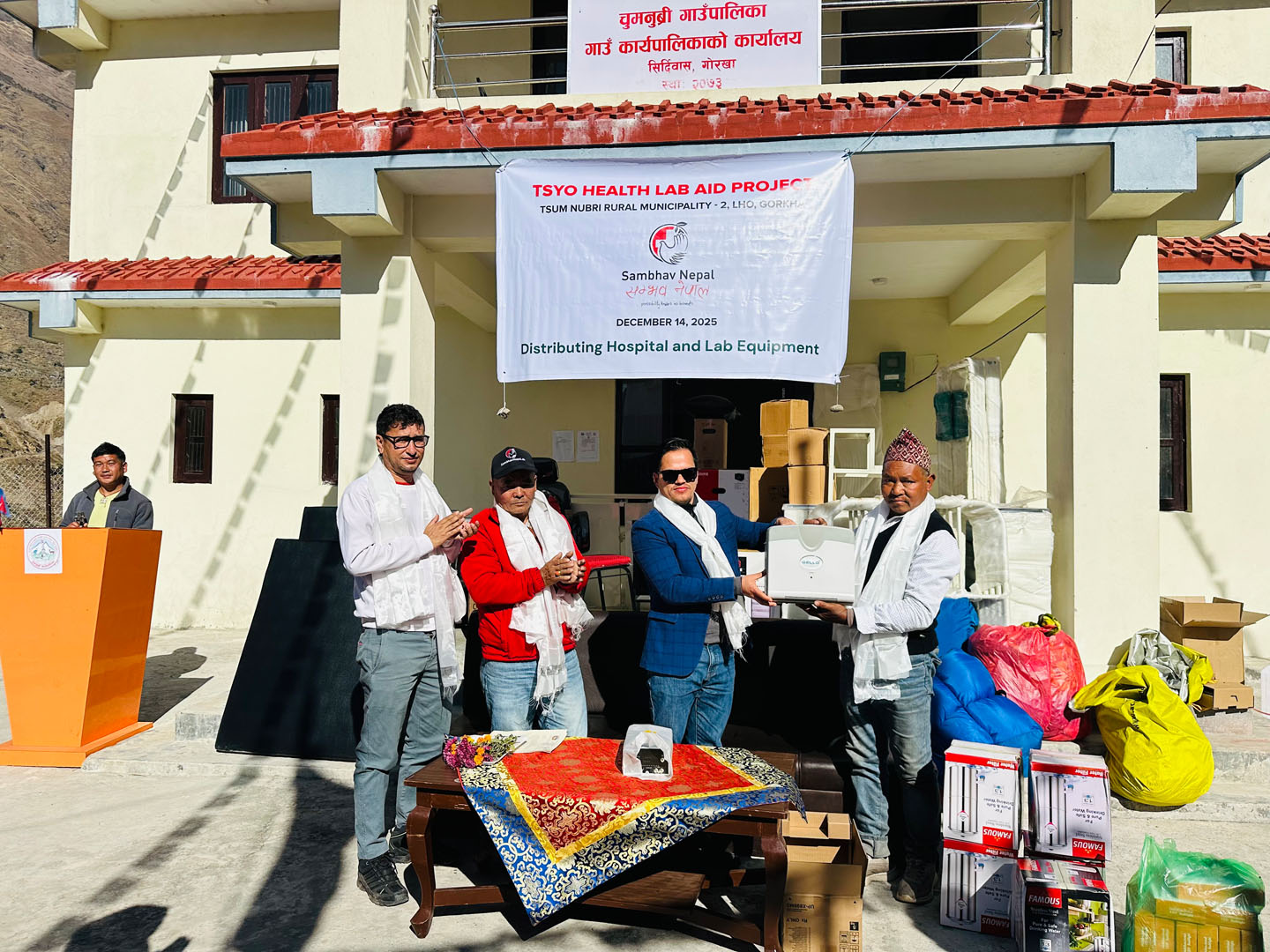 As of now, the required laboratory and medical equipment and supplies have been successfully handed over to Tsum Nubri Rural Municipality. A formal handover ceremony was held on December 14, attended by representatives from the local government, health unit authority, Sambhav Nepal, and community members. This support is aimed at strengthening the health unit’s capacity to provide enhanced diagnostic services and basic healthcare, ultimately improving health outcomes for the local community.